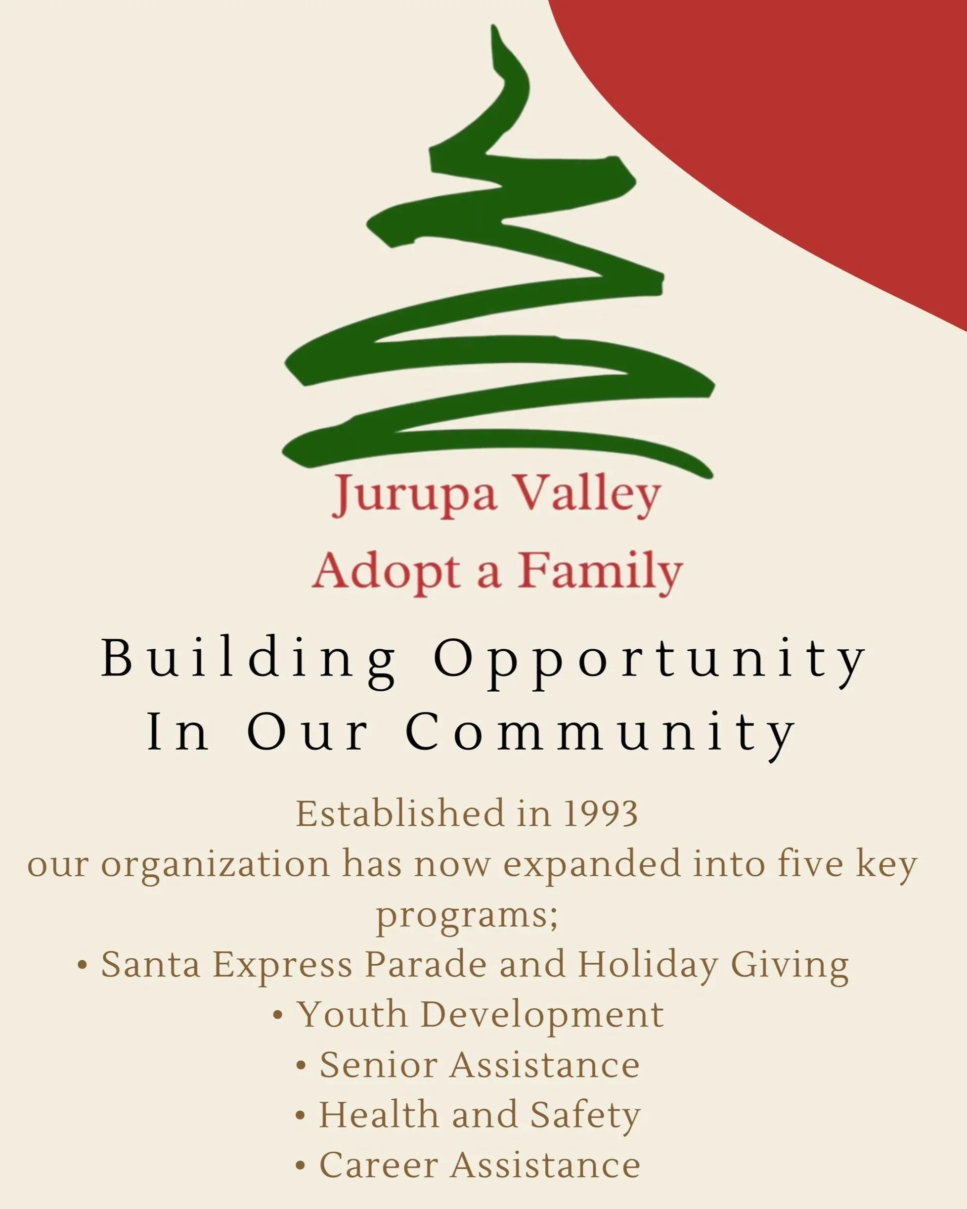 Jurupa Valley Adopt a Family is honored to collaborate on 2 Veterans Day Parades this year, one with Country Village Veterans Association and the other with Flabob Airport at their Veterans Celebration!
